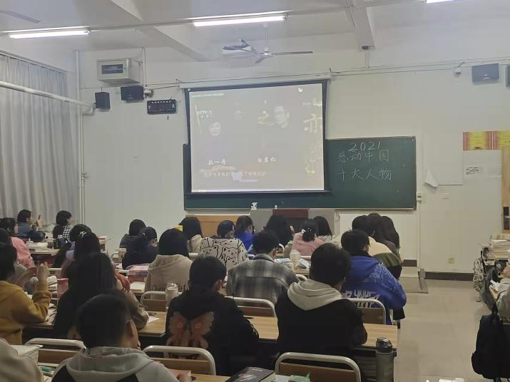 此次活动面向全系学生,由系学生会组织开展,在每个班级播放《2021感动中国十大人物》。视频开始时,一幅厚重长卷被徐徐展开,红底洒在金纸上,启功先生亲题的“感动中国”四个字缓缓出现。紧接着,一个个闪光的名字,一张张感人的照片,一幕幕想、熟悉的画面,书页犹如片片“龙鳞”,记录了《感动中国》创办以来留下的感动瞬间。