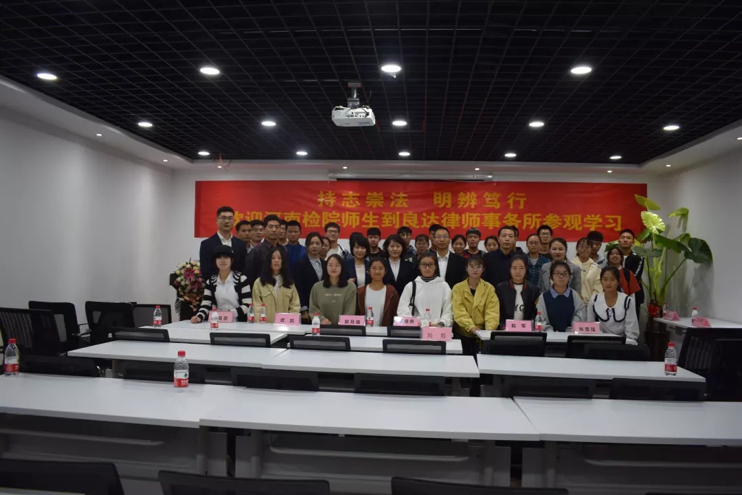 为提高学生的法学专业修养和能力,10月23日下午,在检察系副主任郭月霞、教学科长时瑞燕的带领下,检察系18级辅导员和18级本、专科学生约50余人到河南良达律师事务所参观学习。