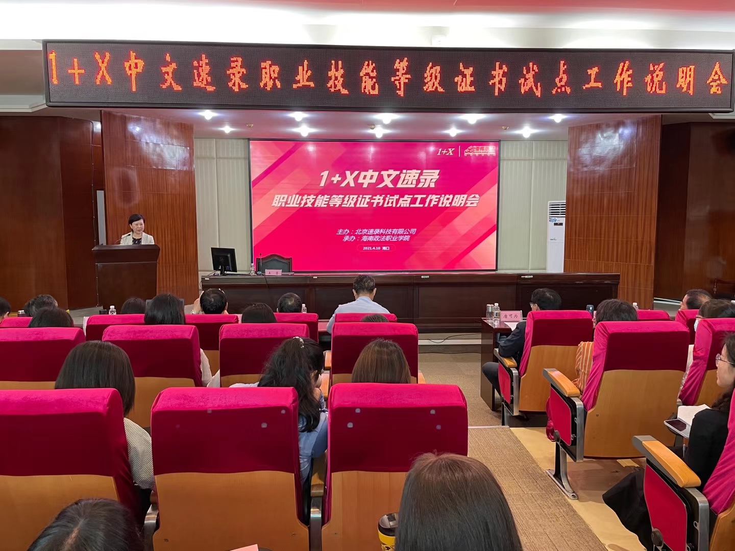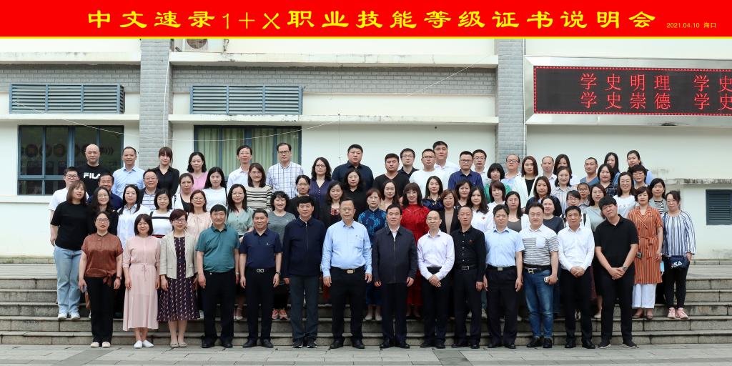 为深入贯彻落实国务院《国家职业教育改革实施方案》和教育部、国家发展改革委、财政部、市场监管总局联合印发的《关于在院校实施“学历证书+若干职业技能等级证书”制度试点方案》,促进相关院校和企业对1+X职业技能等级证书(下称1+X证书)标准的了解,4月10日,由海南政法职业学院和北京速录科技有限公司联合举办的1+X中文速录职业技能等级证书试点工作说明会在海口市举行。来自全国18个省区市、41所职业院校和相关机构共68人出席了说明会。best365官网副院长殷宏、检察系副主任郭月霞和教务科科长时瑞燕参加了此次会议。
