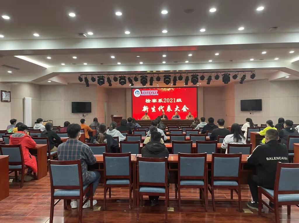 2021年11月17日,检察系2021级学生代表大会在2101报告厅举行,系主任郑志锋、副主任郭荣军、教务科科长时瑞燕、学管科科长张燕乐、2021级辅导员及88名学生代表参加会议。会议由郭荣军主持。