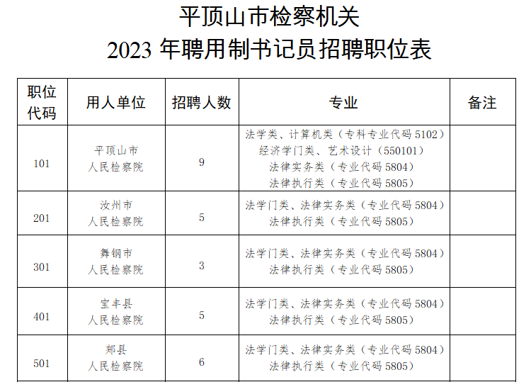 根据《河南省法院、检察院聘用制书记员管理制度改革实施办法(试行)》相关规定和工作需要,平顶山市检察机关委托平顶山市中业人力资源服务有限公司(以下简称“中业公司”)面向社会公开招聘聘用制书记员。现将有关事项公告如下: