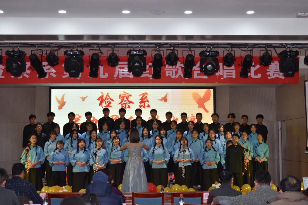建党百年创辉煌,高唱红歌梦飞扬。为讴歌中国共产党带领中华民族实现伟大复兴的百年奋斗历程,颂扬中国共产党的丰功伟绩,唱响爱党爱国主旋律,检察系第九届红歌合唱比赛于2021年12月1日晚在2101报告厅隆重举行。学院副院长殷宏、学生处处长张亚出席观看比赛。